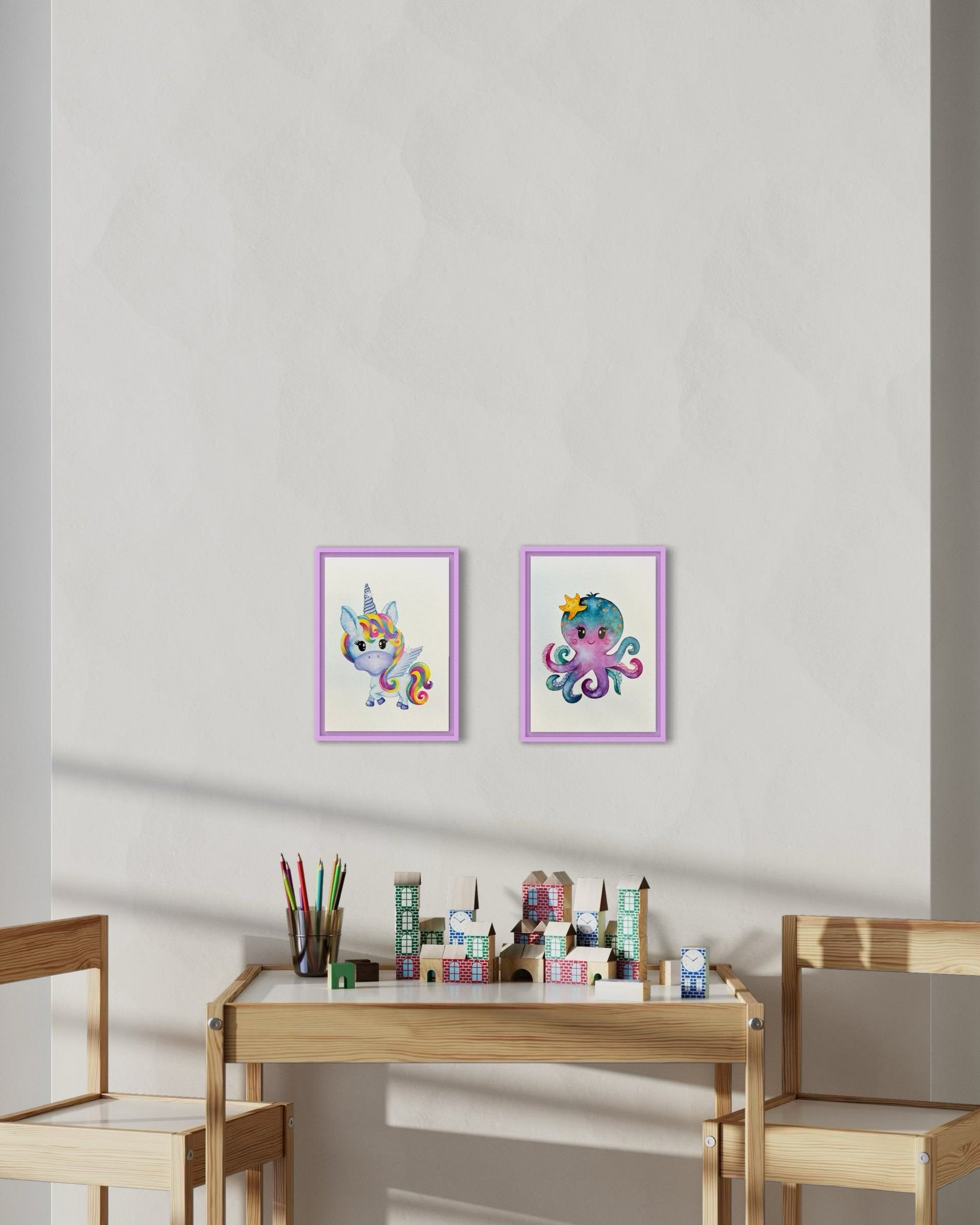 Den søde Enhjørning kan pynte på væggen alene, eller sættes sammen med andre dyr.