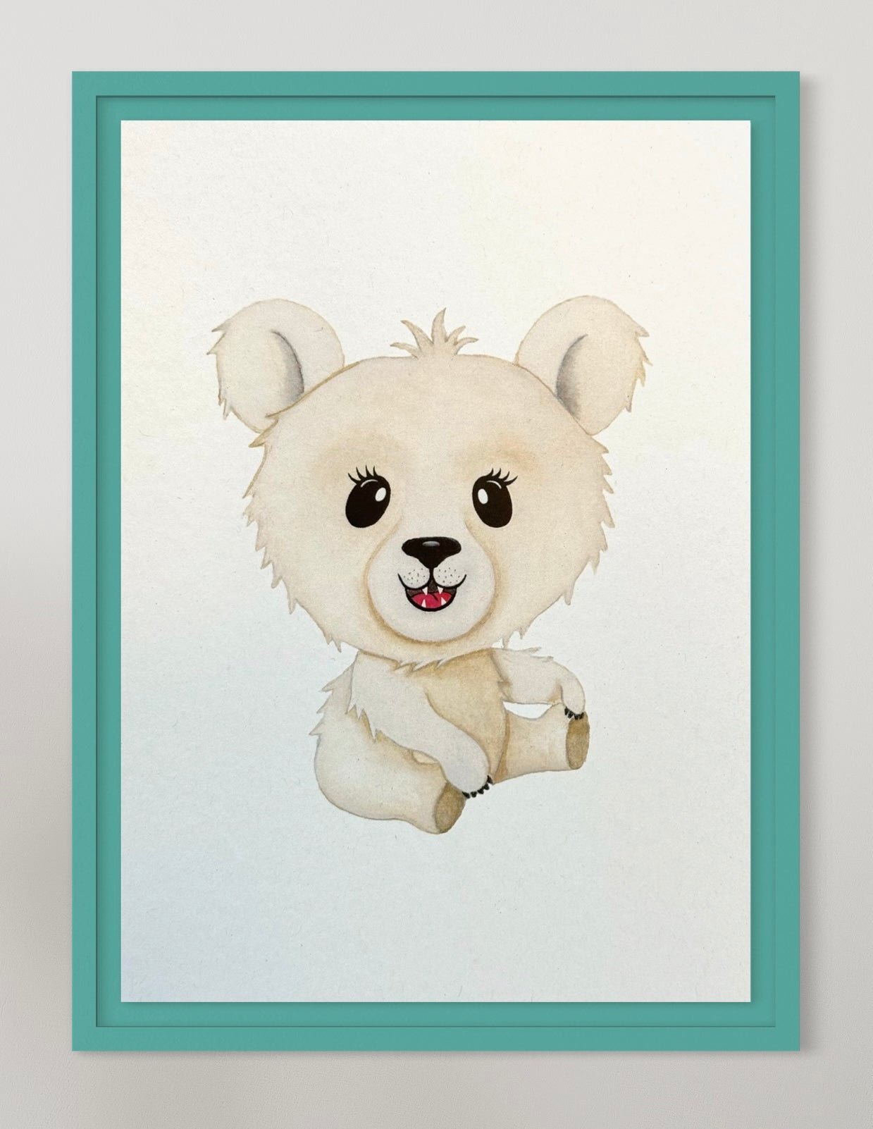 Den søde Isbjørn kan pynte på væggen alene, eller sættes sammen med andre dyr. Isbjørnen findes også på ABC plakaten med dyr.