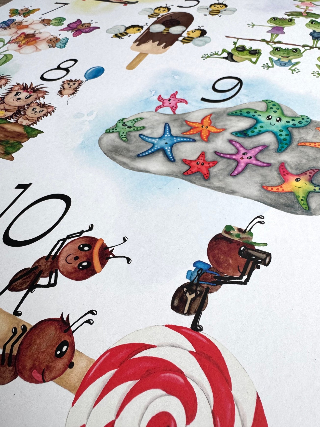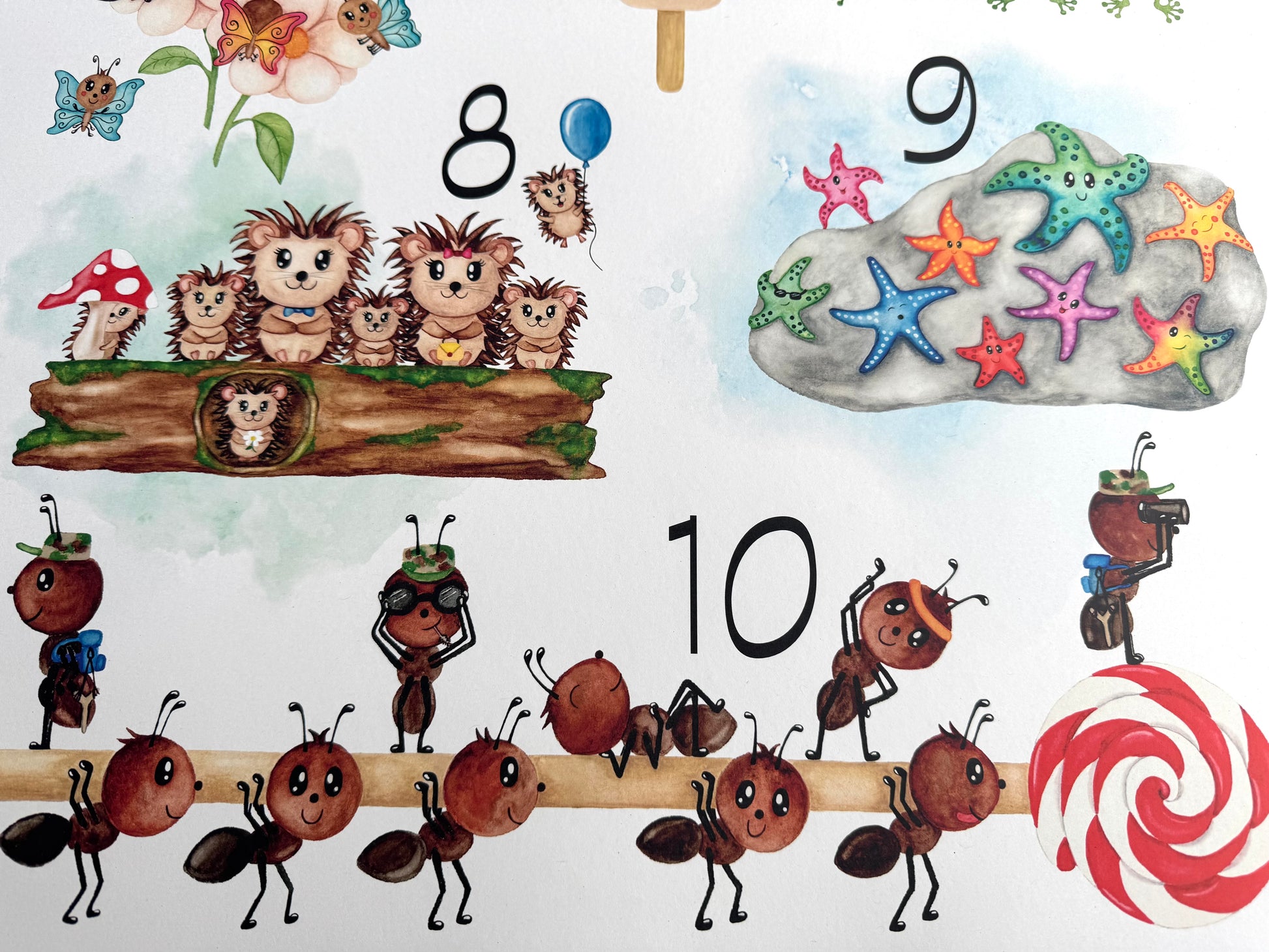 Jeg har lagt vægt på de små detaljer, så plakaten ikke blot er en talplakat, men et univers som virkelig giver mulighed for sjove og søde samtaler med dit barn.