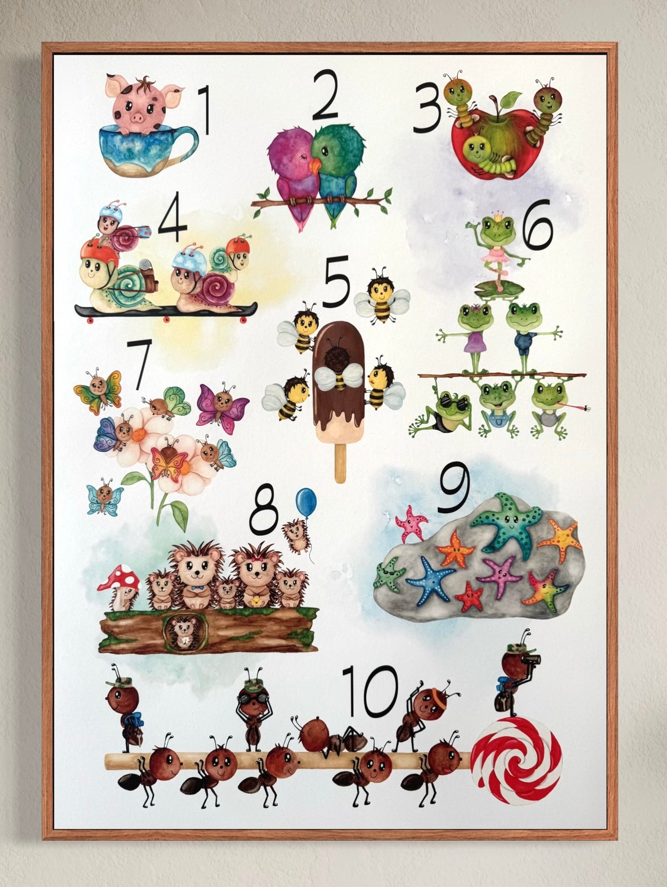 Tæl til ti imens du går på opdagelse sammen med alle dyrene på plakaten!